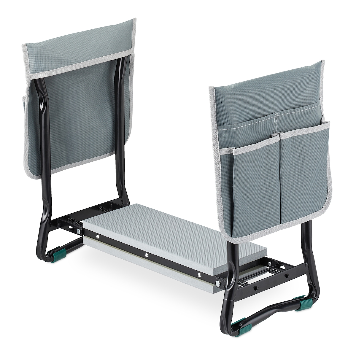 Relaxdays Kniebank für Gartenarbeit, gelenkschonend, klappbar, bis 150kg, gepolsterte Kniehilfe, 2 Taschen, schwarz/grau