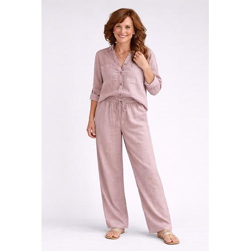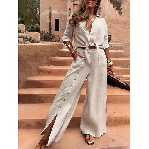Per donna Set di Pantaloni Manica Lunga Colletto a Camicia Tinta unica Moda Streetwear Casuale Quotidiano All'aperto Bianco Verde militare Marrone Estate Vestibilità comoda