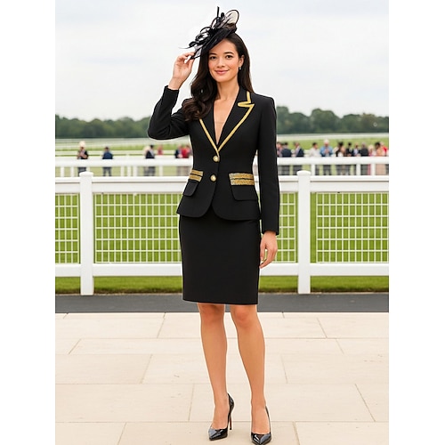 Due Pezzi Abito Aderente Colonna Lunghezza Tè Abito da Festa Abito Cocktail Abito da Sposa per Invitate Abito Madre della Sposa Manica Lunga Colletto Camicia Elegante Festa Lussuosa con Bottoni Color