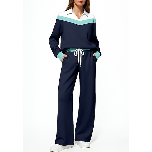 Per donna Maglia Tuta da Ginnastica Tuta da 2 pezzi Coulisse Tasca Geometrico Set di Abbigliamento Sportivo Completo Abbigliamento Primavera Blu marino Grigio Lavoro All'aperto Viaggio Leggero Di