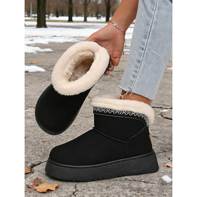 Women's Faux Fur Lined Winter Ankle Boots with Chunky Heel - Cozy and Stylish, Ideal for Cold Weather, Daily Outings and Winter Holidays
