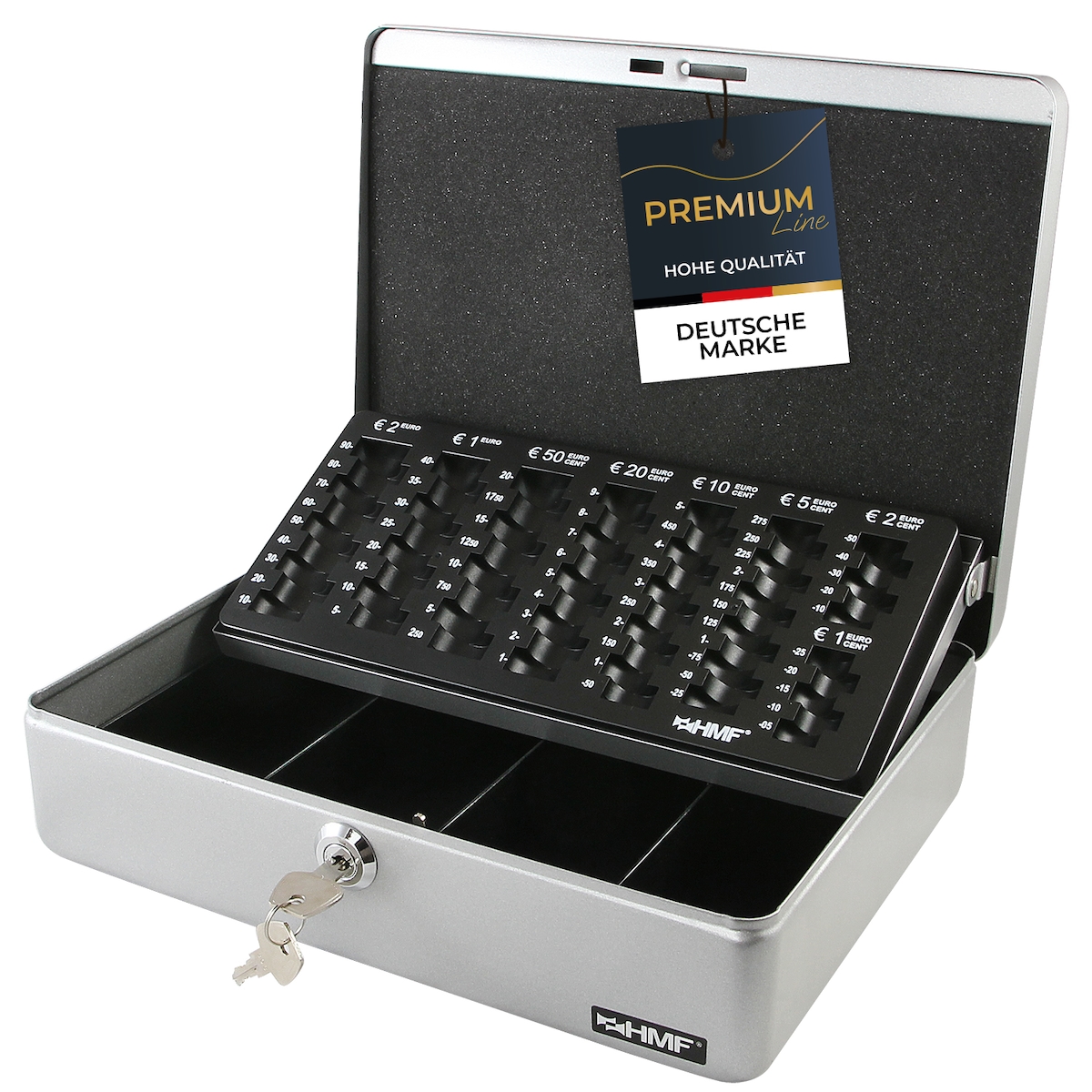 HMF 10015-09 Geldkassette mit Münzzählbrett, 30 x 24 x 9 cm, Silber