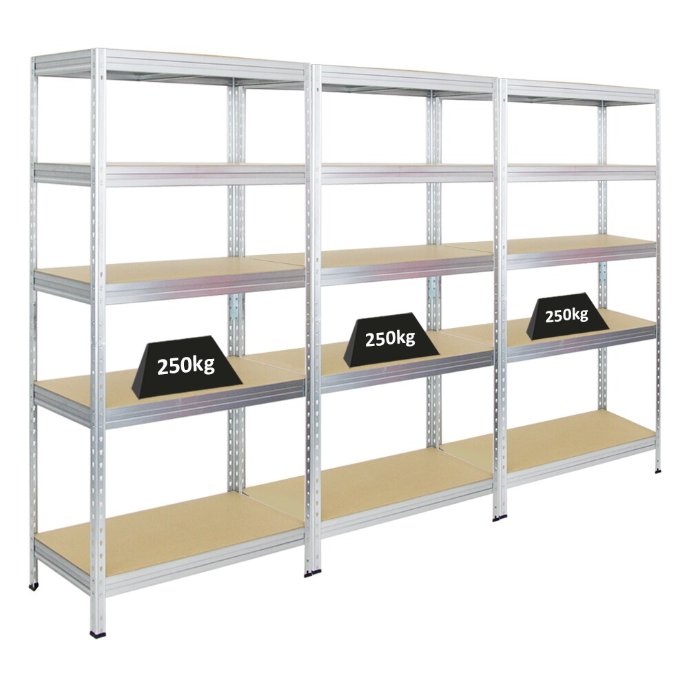 PROREGAL Mega Deal 3er-Set Schwerlastregal Rivet | HxBxT 180x90x45cm | Fachlast 250kg | Verzinkt | Innovatives Stecksystem, Lagerregal, Kellerregal
