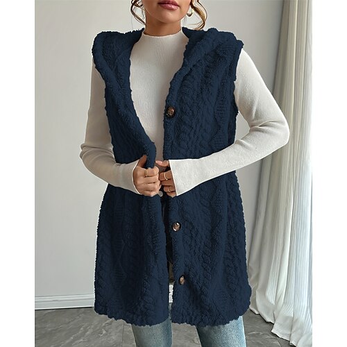 Per donna Cappotto Invernale Gilet in pile Gilet Caldo Confortevole Bottoni Moda Casual Tinta unica Vacanza Abbigliamento quotidiano Uscire Weekend Regolare Con Cappuccio Vestibilità regolare Senza