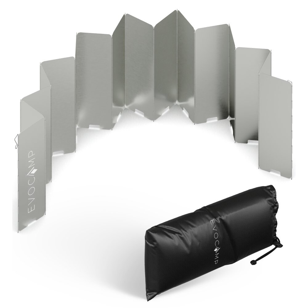 EVOCAMP Windschutz für Gaskocher & Grill – 16 Lamellen, faltbar, kompakt, mit Tasche