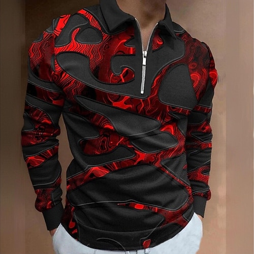 Per uomo Stampe astratte Vintage ▾ Nave POLO Camicia da golf Golf Manica corta Camicia Collo ripiegabile Esterno Strada azzurro cielo Blu Marrone Cachi Grigio A cordoncino Stampa Abbigliamento