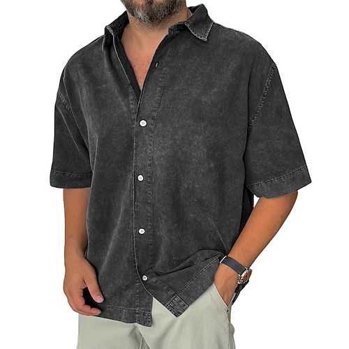 Per uomo Camicia Camicia Estiva Camicia casual Camicia da Spiaggia Camicia con Bottoni Nero Rosa Blu marino Azzurro cielo Viola Manica Corta Tinta unica Bavero Vacanza Quotidiano Bottoni Abbigliamento