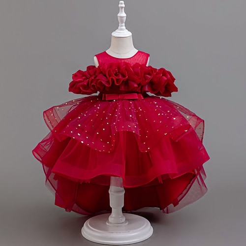 Abito da damigella d'onore bambina Da ragazza Abito formale Vestito da festa Matrimonio Feste Da principessa Dolce Natale Carnevale Increspato Tinta unica Senza bretelline Girocollo Rosa Azzurro cielo