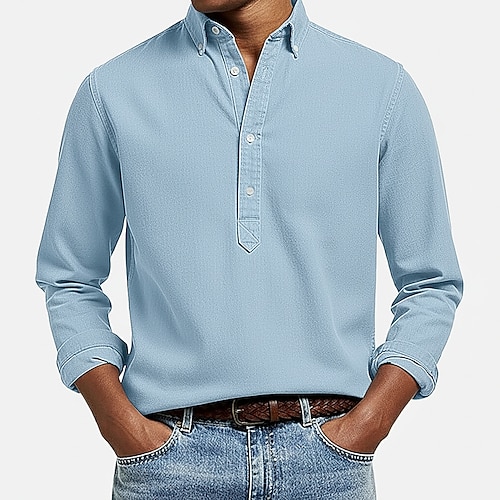 Per uomo Camicia Camicia popover Camicia button-down Camicia casual Blu denim Nero Bianco Blu marino Blu scuro Manica Lunga Semplice Colletto italiano visibile Casuale All'aperto Bottoni Abbigliamento