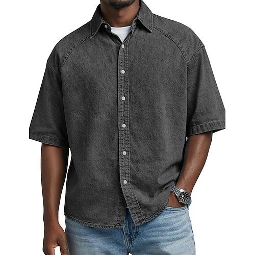 Per uomo Camicia Camicia button-down Camicia casual Camicia 100% cotone lavaggio acido Nero Verde chiaro Rosa Verde scuro Viola Manica Corta Semplice Bavero Quotidiano All'aperto Bottoni Abbigliamento