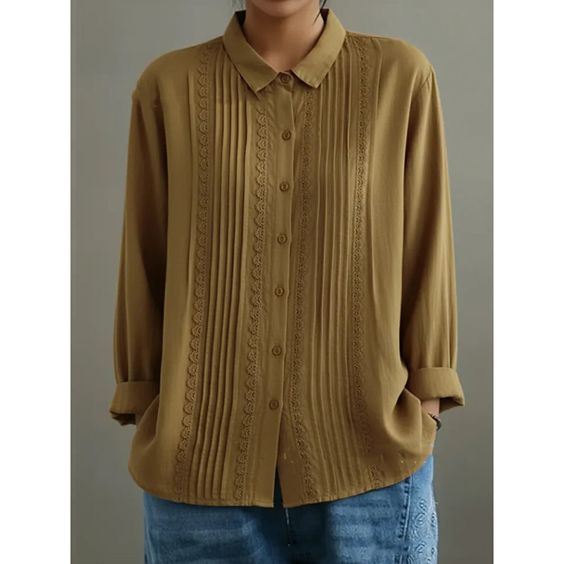 Women's Cotton Linen Shirts Solid Color Stylish Basic Casual Long Sleeve Shirt Collar Long Tops Daily Buttons White Army Green Khaki Summer Fall
