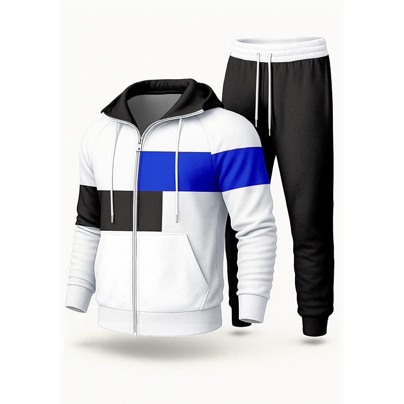 Men's Hoodie Tracksuit 2 Piece Tracksuit Drawstring Zip Up Color Block Clothing Suit Fall Black Royal Blue Vocation Outdoor Travel Lightweight Fashion Long Sleeve Sport Activewear Stretchy Regular Fit