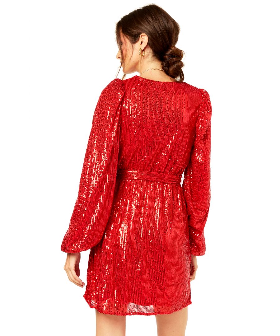 Gini London Womens Bright Red Sequin V Neck Belted Mini Dress - Size 12 UK | Gini London Sale | Discount Designer Brands