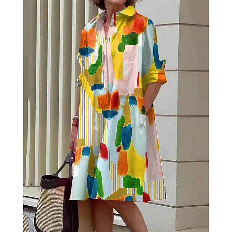 Women's Midi Dress Shirt Dress Casual Dress Fashion Modern Daily Beach Weekend Regular Fit Flower Long Sleeve Shirt Collar White Yellow Blue Orange Spring Fall