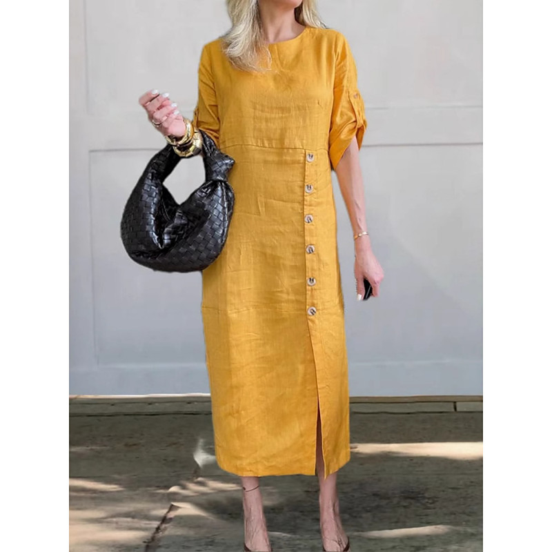 Women's Midi Dress Casual Dress Cotton Linen Dress Basic Modern Daily Weekend Regular Fit Plain 3/4 Length Sleeve Crew Neck Black Yellow Blue Brown Summer Spring Fall