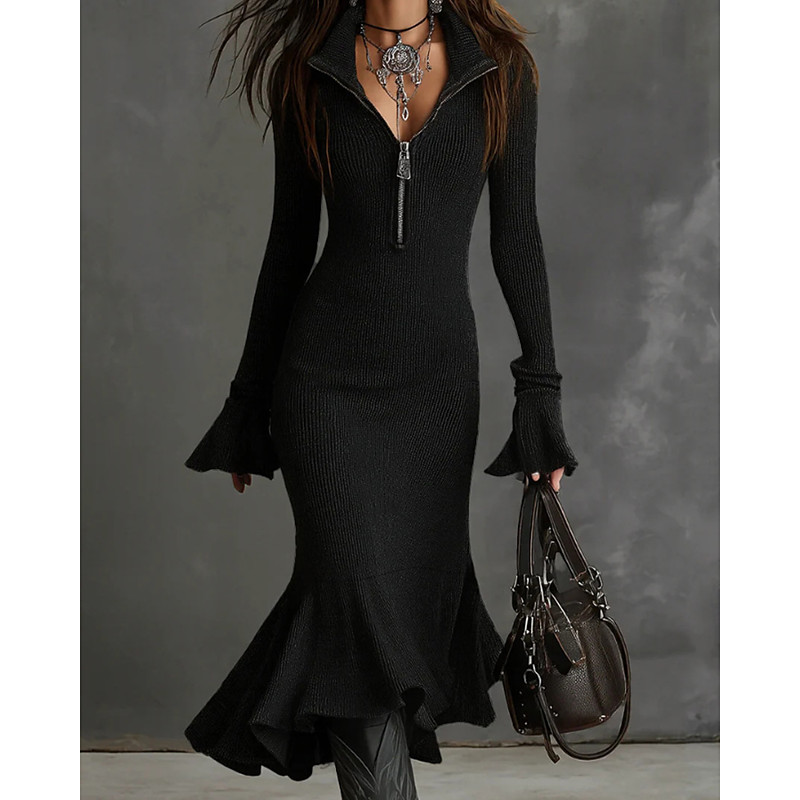Women's Midi Dress Sweater Dress Trumpet Mermaid Dress Elegant Modern Vacation Holiday Date Slim Plain Long Sleeve Shirt Collar Black Army Green Light Brown Brown Spring Fall