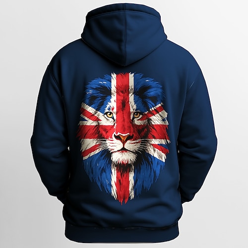 Herren Flagge Löwe UK Kapuzensweatshirt Pullover Sport Mode Rundhalsausschnitt Outdoor Büro Streetwear Schwarz Weiß Kordelzug 3D Herbst Winter Designer