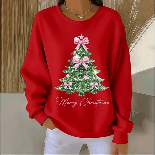 Per donna Felpa Pullover Grafico Babbo Natale Natale Casual Manica Lunga Girocollo Top Regolari Streetwear Abbigliamento Quotidiano Casuale Nero Bianco Rosa Rosa scuro Rosso Autunno Inverno