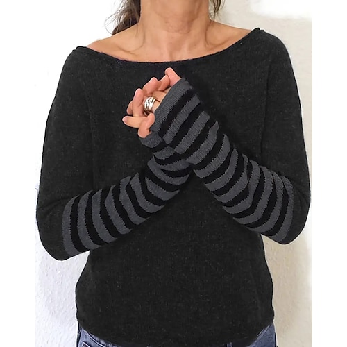 Per donna Felpa Maglione Streetwear Casual A righe Girocollo Patchwork Lavorato a maglia Manica Lunga Top Regolari Maglia All'aperto Quotidiano Ferie Nero Autunno Inverno