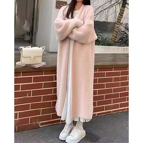 Per donna Felpa Cardigan Elegante Moda Streetwear Tinta unica Aperto davanti Lavorato a maglia Manica Lunga Top lunghi Maglia Quotidiano Ferie Uscire Blu Nero Autunno Inverno