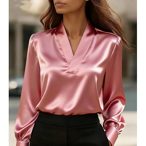 Per donna Camicia Elegant Elegante Raso/Satin Quotidiano Scollo a V Top Regolari Nero Bianco Rosa Cachi Autunno