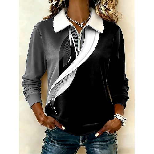 Per donna Pullover Grafico Geometrico Astratto Caldo Classico Casual Manica Lunga Mezza zip Top Regolari Casuale Casa Streetwear Stampato Blu Nero Viola Primavera Autunno Inverno