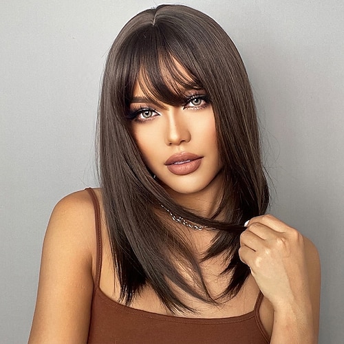 Parrucca Sintetica Riccio Riga centrale Fatto a macchina Parrucca Lungo Marrone scuro Nero Naturale Marrone Ombre Grey Ombre Blonde Capelli Sintetici Per donna Morbido Moda Facile da trasportare