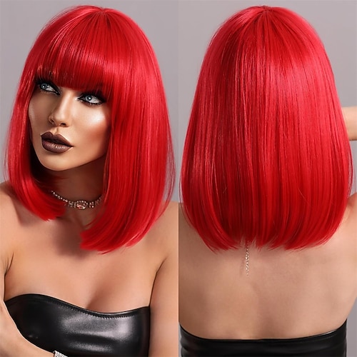 Parrucca di Carnevale Rosa Rosso Nero Afro Liscio Corto Parrucca sintetica da festival Martedì grasso Parata Capelli per costumi da cosplay per Da uomo