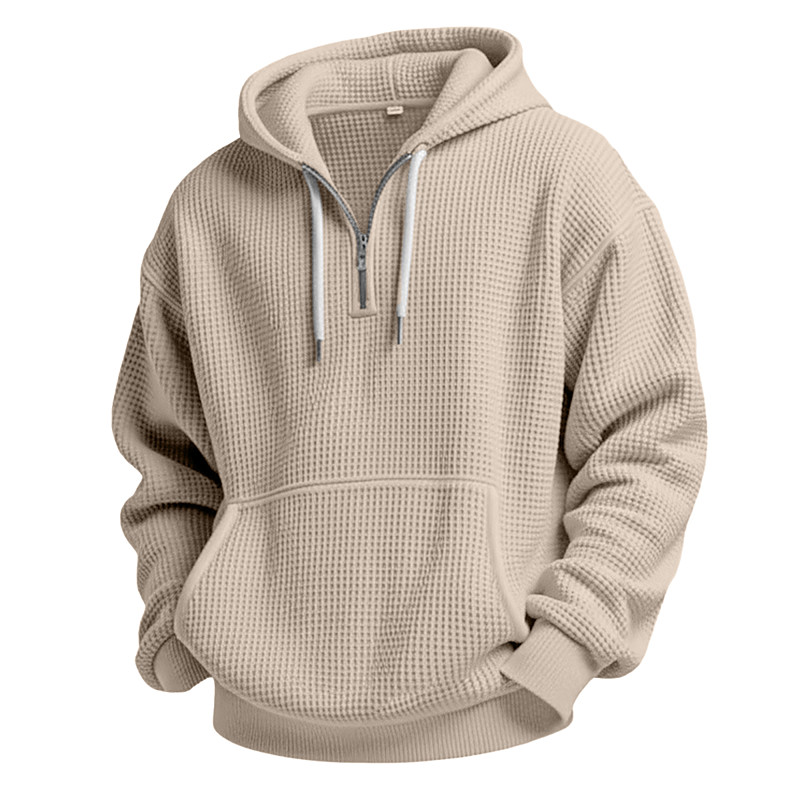 Men's Hoodie Waffle Hoodies Quarter Zip Hoodie White Light Green Army Green Red Navy Blue Hooded Plain Kangaroo Pocket Textured Sports Outdoor Casual Daily Streetwear Cool Sportswear Fall Spring