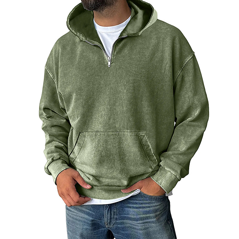 Men's Hoodie Pullover Hoodie Sweatshirt Quarter Zip Hoodie Apricot Wine Red Black White Light Green Hooded Plain Kangaroo Pocket Sports Outdoor Casual Daily Vintage Streetwear Cool Spring Fall