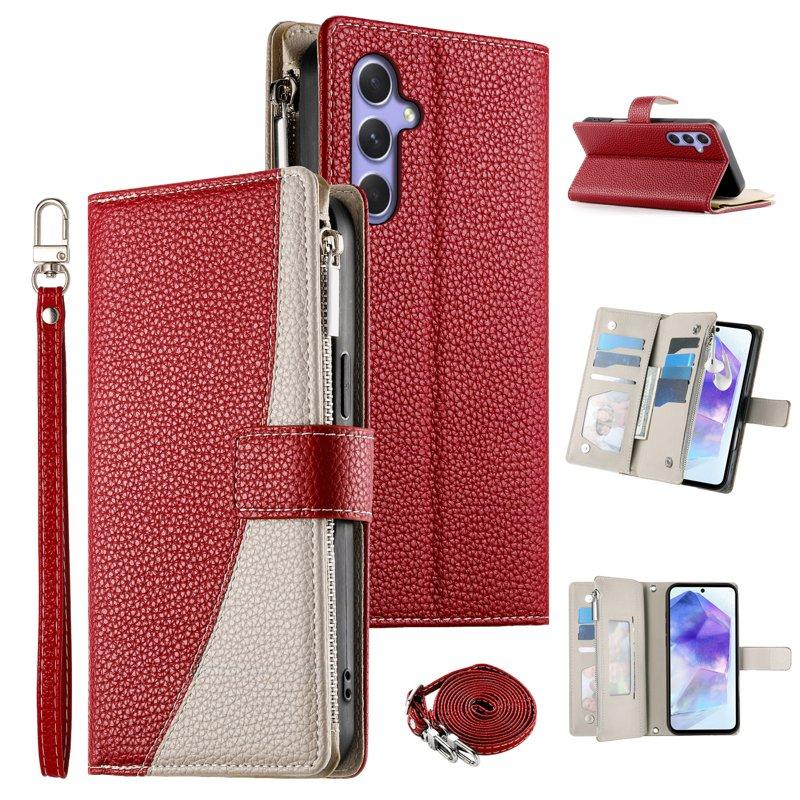 Zipper Samsung Galaxy A55 5G Plånboksfodral Konstläder Splicing - Röd