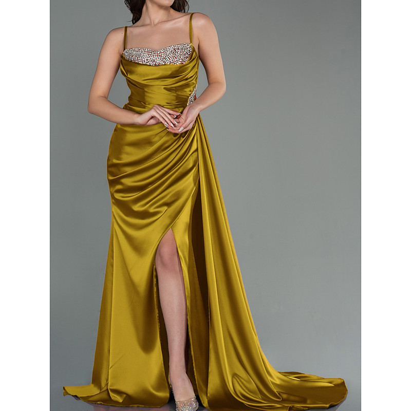 Mermaid Trumpet Floor Length Prom Dresses Evening Gown Ball Gown Formal Dress Elegant Celebrity Style Sparkle Sleeveless Sweetheart Garden Party Wedding Satin with Ruched Crystals