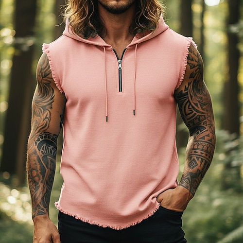 Per uomo Camicia di lino Canotta Gilet Canottiera Senza Maniche Con Cappuccio Estate Tutte le stagioni Semplice Moda Streetwear Sportivo Zip a un quarto Casuale Palestra Streetwear Blu Nero Rosa