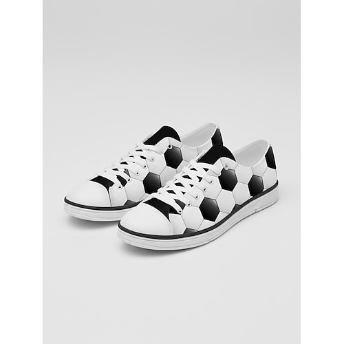 Sneakers da uomo in tela con stampa a tema calcio: scarpe casual stringate con motivo a pallone da calcio, perfette per le partite, gli eventi sportivi, lo streetwear e l'uso quotidiano.