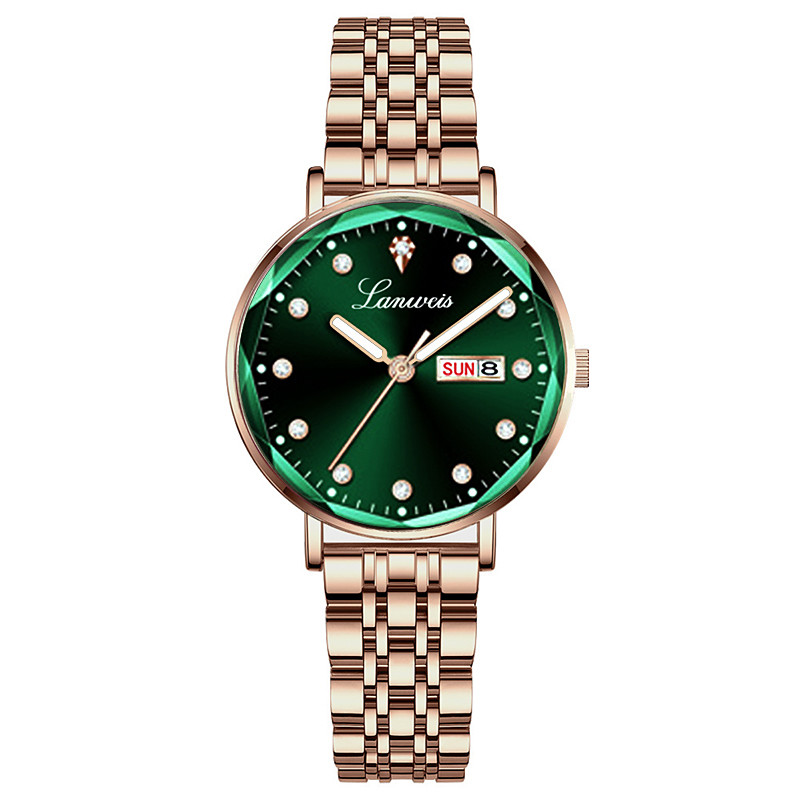 New Fashionable And Trendy Steel Band Butterfly Clasp Women'S Watch With Ipx7 Water Resistance Dual Calendar Luminous Light Luxury Versatile Business Quartz Watch Multi-Functional Women'S Sports