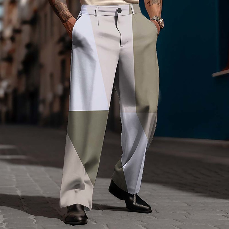 Men's Geometric Color Block Trousers Dress Pants Suit Pants Mid Waist Business Casual Outdoor Dailywear Relaxed Fit Flat Front Dress Pants with Side Pockets Spring Fall 3D Print Blue Purple Green