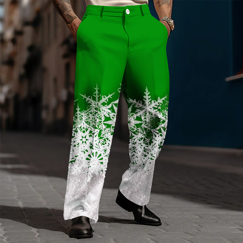 Christmas Men's Snowflake Gradient Color Trousers Dress Pants Suit Pants Mid Waist Fashion Casual Party Holiday Relaxed Fit Flat Front Dress Pants with Side Pockets Fall Winter 3D Print Red Blue