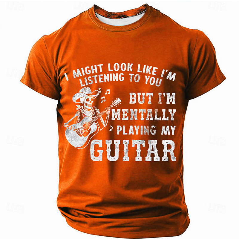 Men's Guitar Funny Slang T Shirt Short Sleeve T shirt 3D Print Crew Neck Shirt Fashion Daily Daily Street Blue Black Red Summer Spring Clothing Apparel S M L XL XXL XXXL