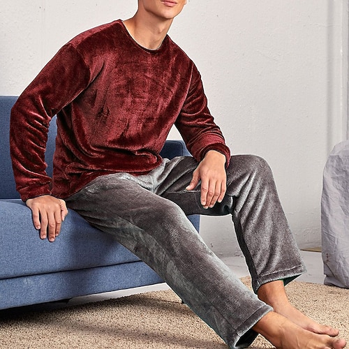 Per uomo loungewear Pigiami Set pigiama Top e pantalone del pigiama 2 pezzi Liscio Moda Informale Comoda Interni Giornaliero Flanella Comfort Girocollo Manica lunga Pullover Pantalone Vita elastica