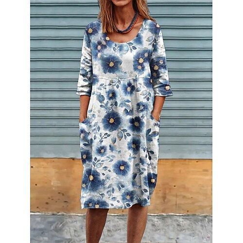 Per donna Insieme del vestito Vestito Casual Abito Stampato Moda Moderno Floreale Stampato Abito Midi Manica 3/4 Girocollo All'aperto Data Blu Viola Verde Autunno Vestibilità comoda