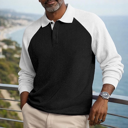Per uomo Magliette Polo a Nido d'Ape Casuale Bavero Manica Lunga Moda Moderno Tinta unica Lavorato a maglia Primavera Primavera Autunno Tutte le stagioni Vestibilità comoda Blu Nero Blu marino