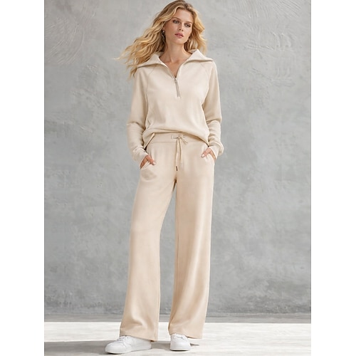 Per donna Set di Pantaloni Manica Lunga Colletto a Camicia Tinta unica Moda Streetwear Casuale Quotidiano All'aperto Beige Estate Vestibilità comoda