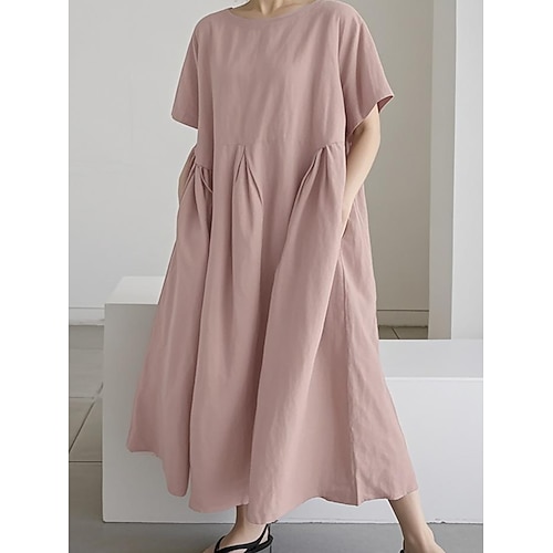 Per donna Abito Midi Misto cotone Vestito Casual Abito in cotone e lino Elegante Moda Moderno Quotidiano All'aperto Vacanza Vestibilità comoda Semplice Manica Corta Girocollo Nero Bianco Giallo Rosa