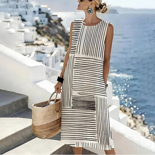 Per donna Abito Midi Abito a Tubino Vestito Estivo Abito a trapezio Vacanza Casual Boho Spiaggia Uscire Vestibilità comoda Grafico Geometrico Senza Maniche Girocollo Nero Rosa Verde Grigio chiaro