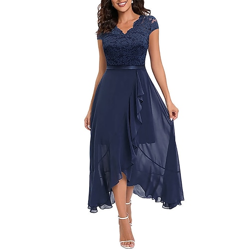 Per donna Abito Midi Vestito da Festa Abito da Cocktail Vestito in Chiffon Elegante Moda Moderno Festa serale Feste Matrimonio Vestibilità regolare Semplice Manica Corta Scollo a V Nero Rosa Rosso