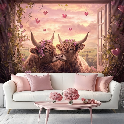 Decorazioni nuziali Sfondi Foto appendibili Grande arazzo Arte Mural Decor Coperta Tenda Decorazione Casa Camera da letto Soggiorno Decorazione Manzo delle Highlands