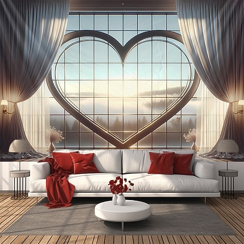 San Valentino arazzo Striscioni Coperta Rose Finestra Amore Cuori Carino Romantico Moderno Da serata Soggiorno Sfondi di ripresa Decorazione per proposta di matrimonio Arredamento per la casa