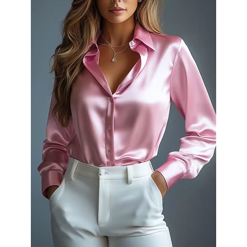 Women's Shirt Elegant Dressy Satin Solid Color Business Modern Casual Long Sleeve Shirt Collar Regular Tops Work Formal Wear Buttons Blue Yellow Pink Wine Green Summer Spring