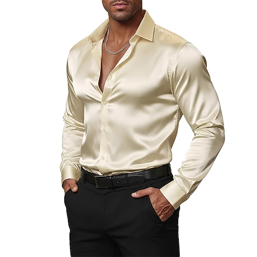 Per uomo Camicia Camicia in raso Camicia elegante Camicia con Bottoni Camicia da Ballo Semplice Balli di fine anno Matrimonio Verde chiaro Vino Blu marino Blu reale Manica Lunga Collo ripiegato Tutte