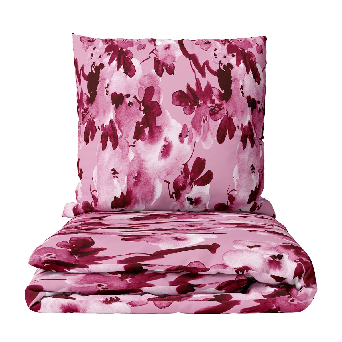 Leonado Vicenti Feinbiber Bettwäsche 155x220 cm Kissenbezug 80x80 cm Rosa Lila Blumen Motiv Set mit Reißverschluss